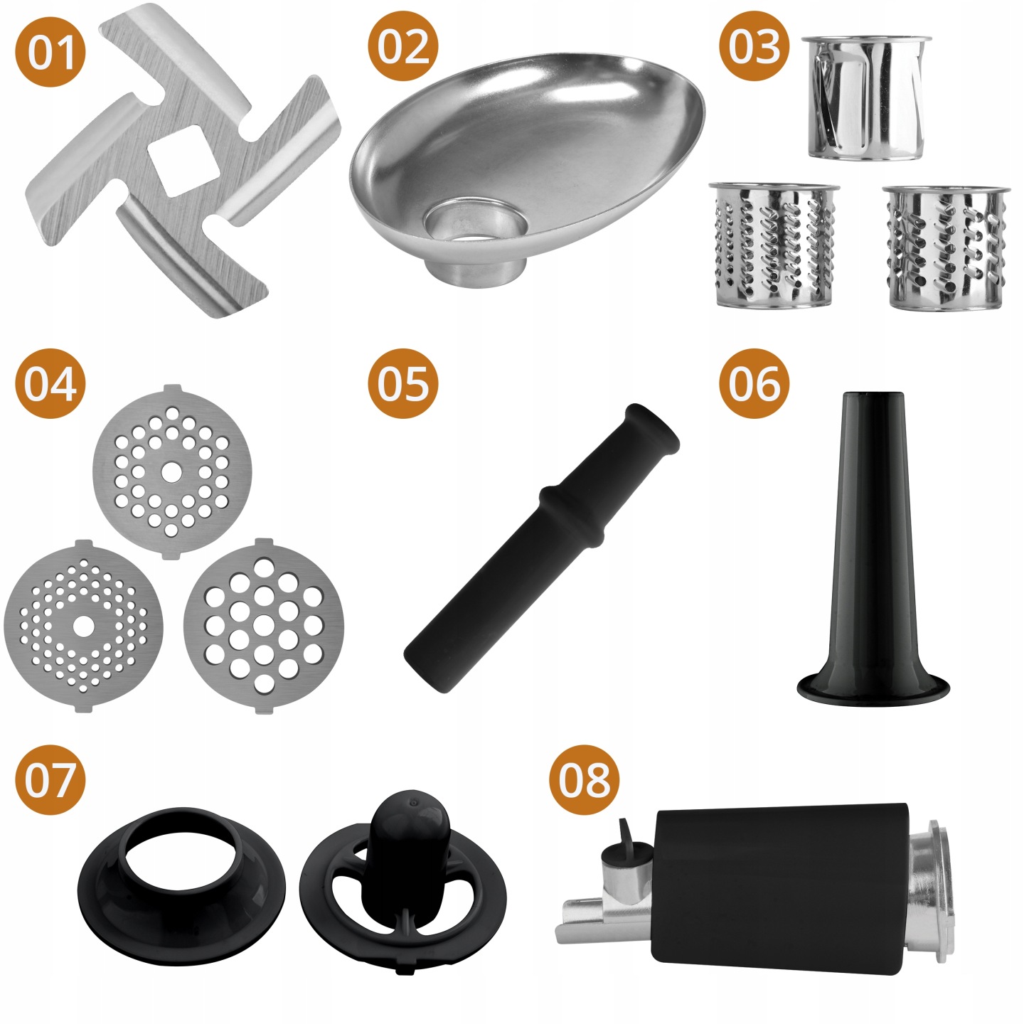 03 — 3 металевих сита з різними діаметрами отворів (3 мм, 5 мм, 7 мм)