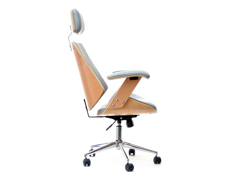 Надзвичайно елегантне офісне крісло безпрецедентної форми, виготовлене з гнутого дерева та ніжної екологічно чистої шкіри. Крісло додатково обладнане практичним підголівником і оббитими підлокітниками, що неабияк підвищує комфорт і зручність використання.